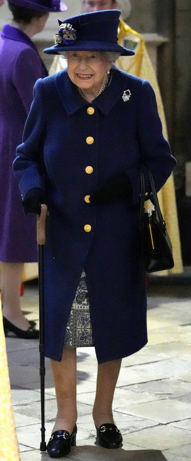 Елизавету II сопровождала ее дочь принцесса Анна во время визита на службу благодарности по случаю столетия Королевского британского легиона в Вестминстерском аббатстве. Королеву видели на публике с тростью лишь в 2003 и 2004 годах, после операции на колене.