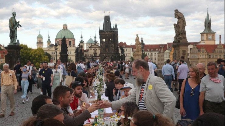 "Жалпы 515 метр фуршет столы жайылды. Оған кез келген адам келіп қатысуға мүмкіндік алды. Тек бір шарт қойылды: әркім өзімен бірге дастарханға қоятын тәттілер мен тағам әкелуі керек болды. Сондай-ақ ол шараға алдын ала тіркелу керек болды. Көптеген адам "Қош бол, COVID", "Біраз уақыт бір-бірін көрмеген адамдар қуанатын болды" деп жазылған плакатпен шығып, ұрандатты. Оны Прага-1 ауданының мэрі мен "Пиано" мейрамхана қауымдастығы ұйымдастырды. Бұған дейін бұл шараны Louis Vuitton ұйымдастырғысы келді деген сөздер болды", - дейді ол.