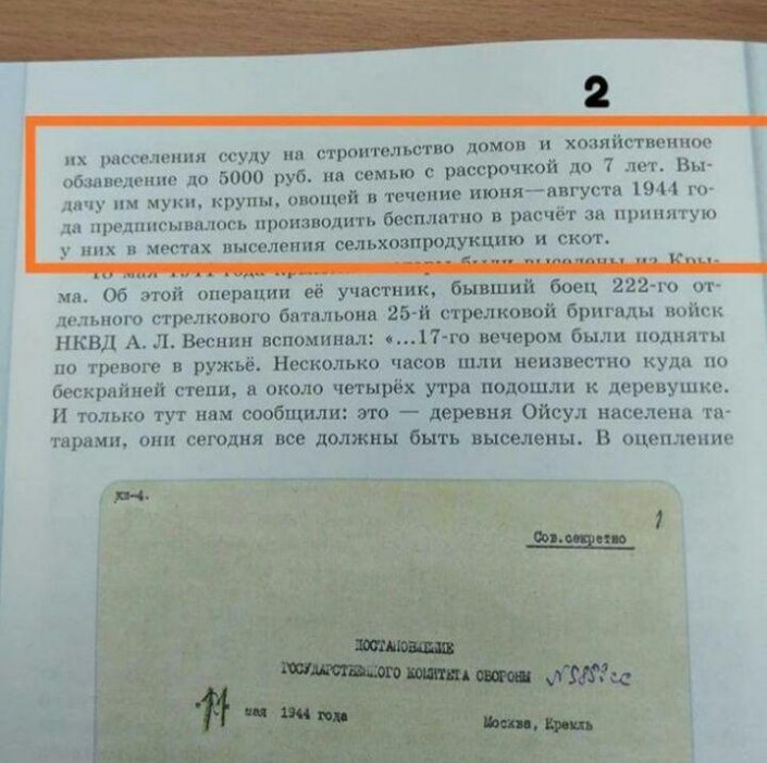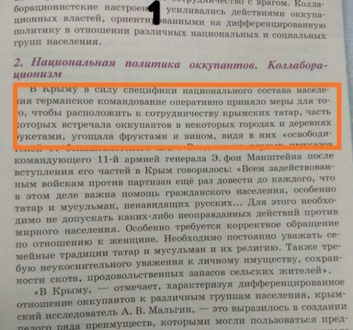 В совете подчеркнули, что авторы учебного пособия умолчали о других исторических, документально обоснованных фактах, показывающих весомый вклад крымско-татарского народа в победу в Великой Отечественной войне.