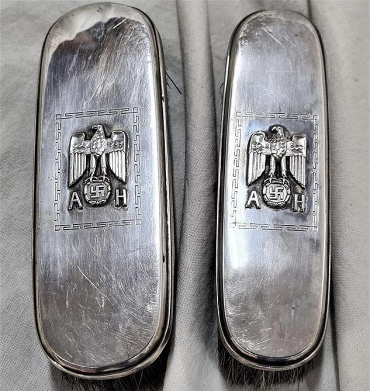 На каждом предмете на аукционе австралийской компании JB Military Antiques были изображены нацистские знаки отличия и инициалы Адольфа Гитлера – AH. Среди предметов были коробка для сигарет, графин, ведерко для льда, соусник и расческа.