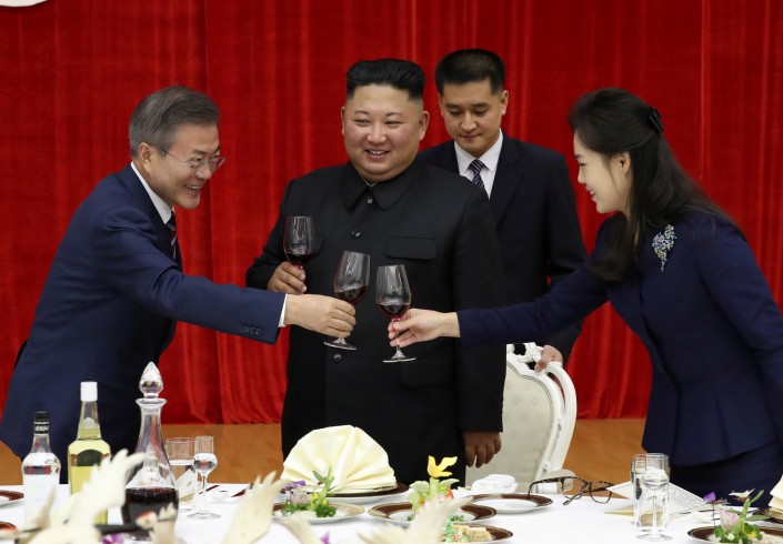 Произнеся тосты, лидеры двух корейских государств пригубили из высоких бокалов красное виноградное вино и приступили к трапезе.