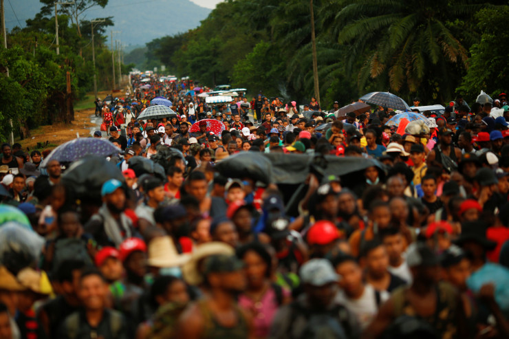 Караван является одной из двух больших групп мигрантов - выходцев из Центральной Америки и Карибского бассейна, которые покинули город Тапачула на юге Мексики, чтобы добраться пешком на север к границе США, с семьями, включая маленьких детей.