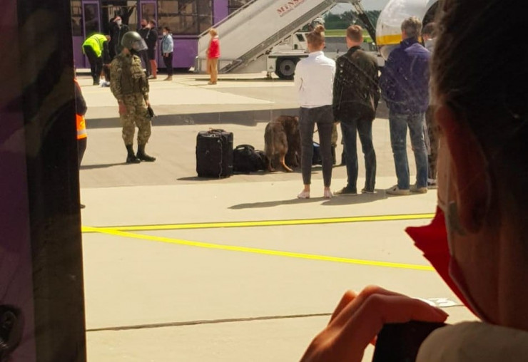 После посадки основатель NEXTA, как рассказал очевидец, продолжал дрожать, но был спокоен. В самолет зашли люди с собаками, Протасевича отвели в сторону, обыскали и вытряхнули все его вещи. Рядом с ним все время находился сотрудник силовых структур. Позднее Протасевича вывели из самолета.