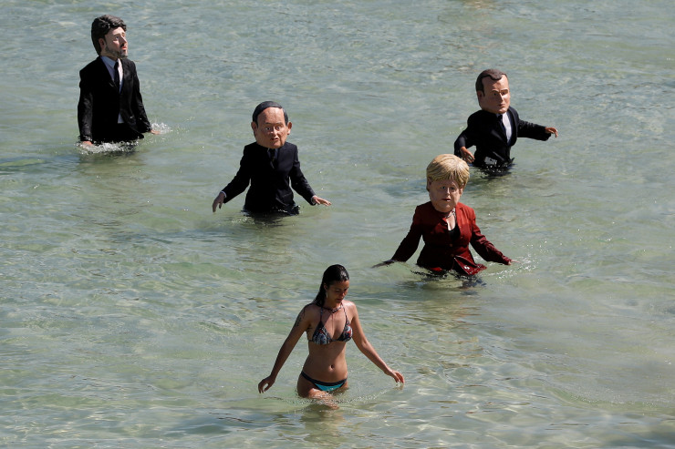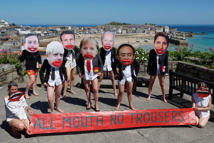 Кроме того, тысячи людей собрались у международного пресс-центра саммита "Большой семерки", выступая против бездействия властей крупнейших экономик мира перед лицом климатических изменений и множества других мировых проблем.