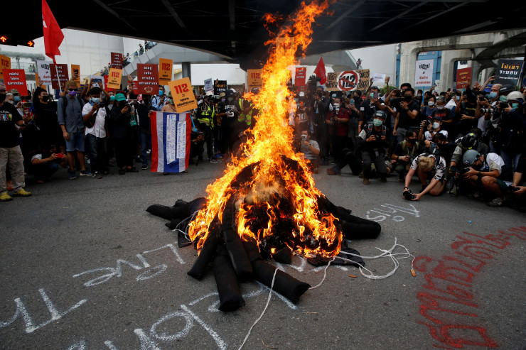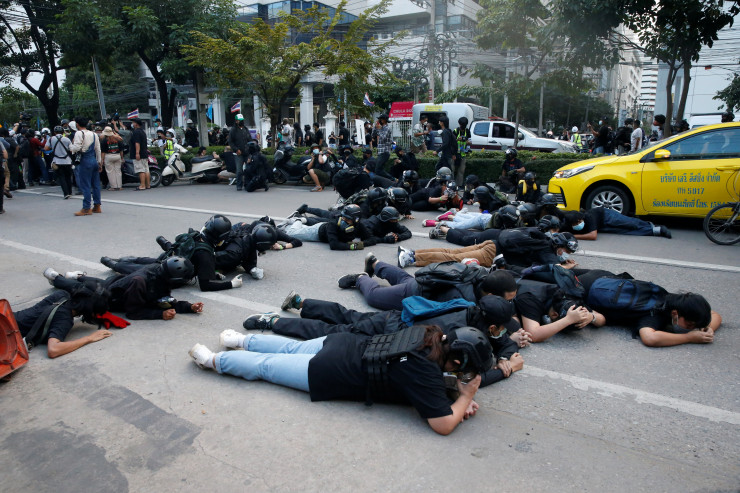 Согласно записям, собранным группой "Тайские юристы за права человека", с начала протестов в прошлом году по меньшей мере 157 людям были предъявлены обвинения в соответствии с законом, который предусматривает тюремное заключение сроком до 15 лет для осужденных за клевету на монархию.