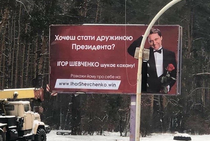 Кандидат в президенты Игорь Шевченко удивил украинцев, а точнее украинок, креативным предложением: "Хочешь стать женой президента? Игорь Шевченко ищет любимую!" Более того, кандидат разместил на своем сайте анкету для потенциальной жены, где необходимо указать имя, дату рождения и место жительства.
