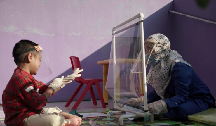 "Иметь прозрачный пластиковый барьер - одно из наших обязательств, чтобы дети могли приходить в детсады", - сказала директор частного детского садика Permata Hati. Более того, сообщается, что руководство позволяет посещать учреждение только шести детям раз в две недели.