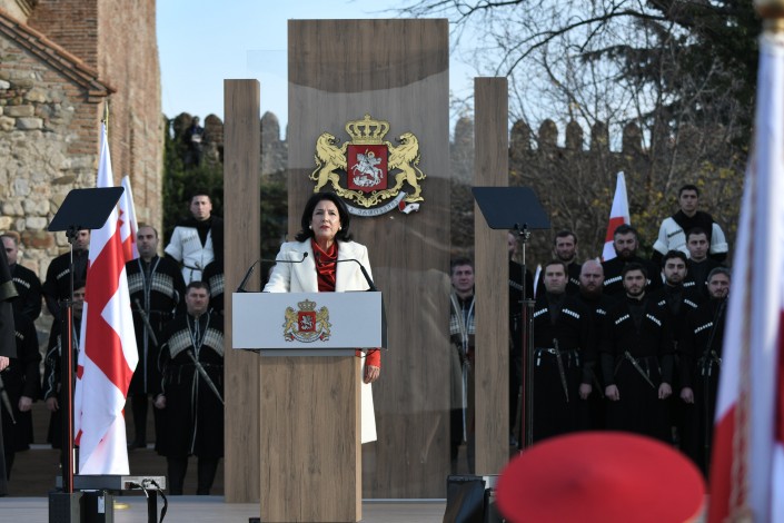 В воскресенье, 16 декабря, в грузинском городе Телави состоялась инаугурация нового президента Грузии Саломе Зурабишвили. Церемония прошла в крепости Батонис на территории сохранившегося царского комплекса - резиденции Ираклия II, сообщает телеканал TRT.