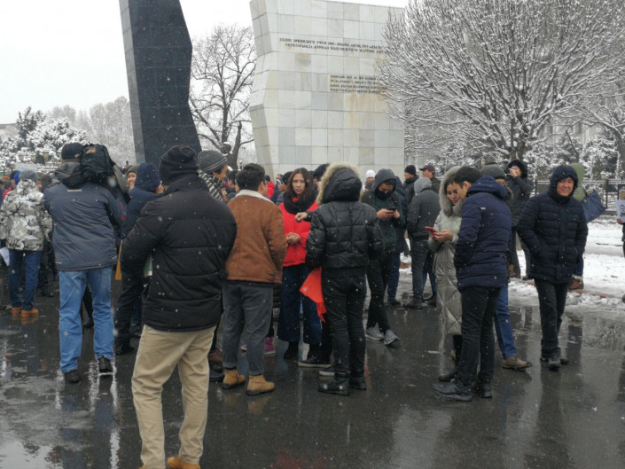 Собравшиеся требовали от властей отреагировать на расследование СМИ о коррупции на таможне Кыргызстана. Согласно данным этого расследования, с 2011 по 2017 годы из страны по коррупционным схемам вывели 700 миллионов долларов.