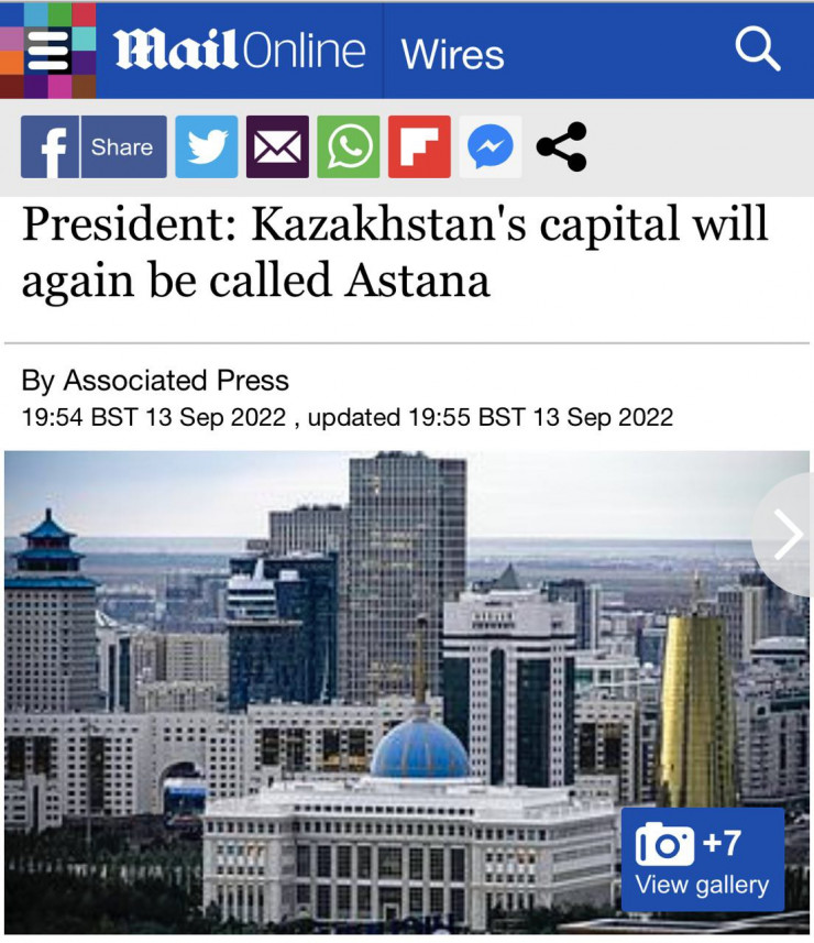 Публикации о переименовании столицы Казахстана также вышли на страницах британских изданий Daily Mail и The Independent, телеканала ABC News, американских The Washington Post, Financial Post, турецкого издания Daily Sabah.