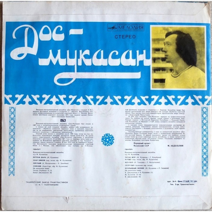 "Soviet Grail представляет долгожданное, расширенное и официальное переиздание на виниле одноименного альбома казахского вокально-инструментального ансамбля "Дос-Мукасан", ставшего настоящим Граалем для искушенных диггеров и коллекционеров со всего мира. Средняя стоимость оригинальной пластинки на вторичном рынке составляет 500 евро. И это неспроста... Ведь альбом является одним из немногих примеров экзотического и психоделичного звука того времени, где туманные и красивые вокальные аранжировки переплетаются с рифами перегруженных гитар, а барабанные партии уносят в унисон своими ломаными ритмами", - сообщает компания.