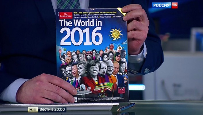 Президент Украины Петр Порошенко опубликовал в социальных сетях обложку спецвыпуска авторитетного журнала The Economist, на которой он стоит среди мировых лидеров - между британским и индийским премьер-министрами. Однако коллаж оказался подделкой, поскольку на настоящей обложке на том же месте изображен президент России Владимир Путин, сообщает РБК.