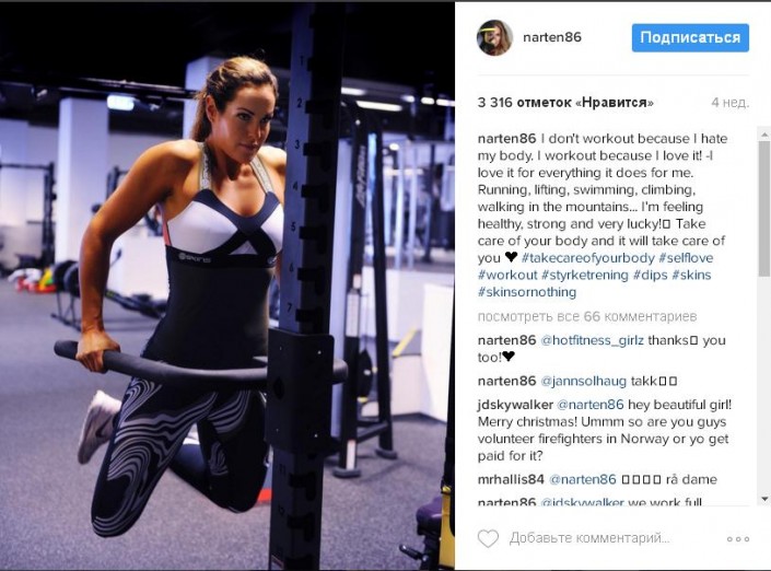 Самой привлекательной пожарной в мире называют норвежку Гунн Нартен (Gunn Narten) ее поклонники в Instagram, пишет The Daily Mail.