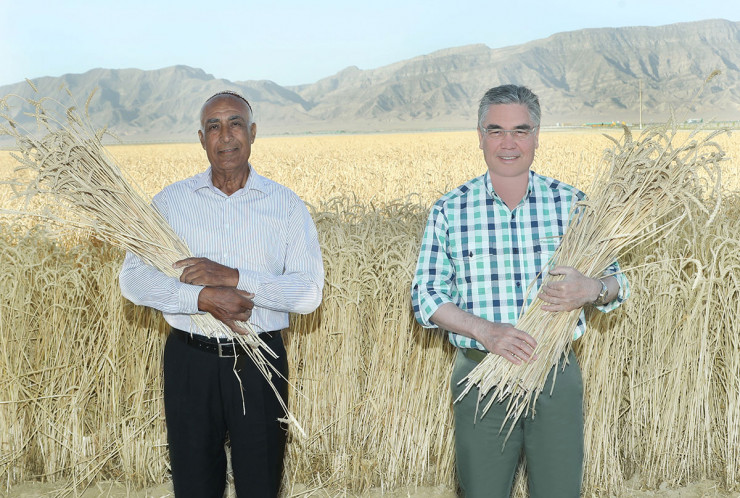 Бердымухамедов осмотрел поле арендатора-хлебороба Тагандурды Байрамгулыева. Глава государства поговорил с дайханином, затем с механизатором Гурбанберды Тувакгеловым и, сев в кабину комбайна John Deere, "принял участие в уборке зерновых".