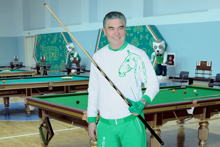 Бердымухамедов также провел встречу с членами Федерации Туркменистана по бильярду, а после разыграл партию с внуком.