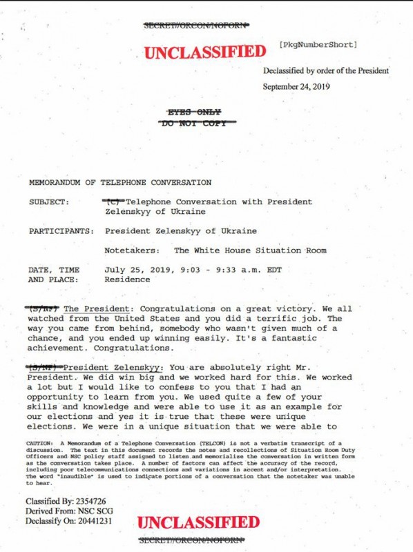Разговор двух лидеров стал причиной крупного скандала в США. Демократ Нэнси Пелоси объявила о начале процедуры импичмента Трампа. Основанием стали предполагаемая попытка главы государства использовать власти Украины для компрометации своего главного соперника по выборам Джо Байдена, а также попытки скрыть эти действия.