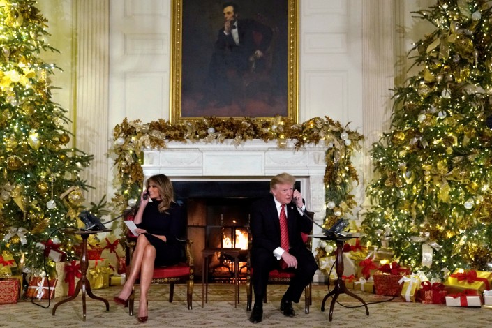 Накануне президент США Дональд Трамп и первая леди Мелания Трамп участвовали в специальной программе по отслеживанию "перемещений Санты". NORAD Tracks Santa - рождественская программа, созданная под покровительством Командования воздушно-космической обороны Северной Америки. Ежегодно, начиная с 1955 года, накануне Рождества NORAD Tracks Santa сообщает вымышленный путь сказочного Санта-Клауса, покинувшего Северный полюс и отправившегося разносить подарки детям по всему миру. В объявлении указывался номер телефона, по которому дети могли позвонить Санта-Клаусу и узнать, над каким городом он пролетает. На самом же деле дети, звонившие Санте, попадали в центр Континентального Командования воздушно-космической обороны. В это Рождество на звонки детей отвечали сам Трамп и первая леди США.
