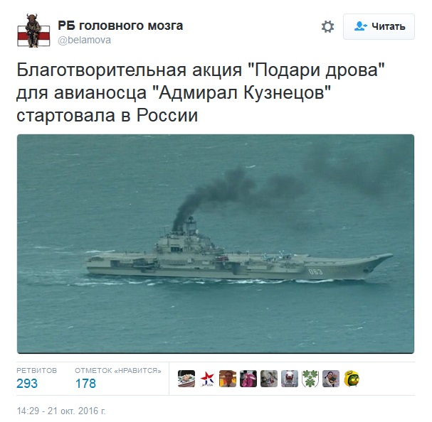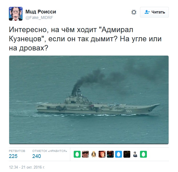 Между тем некоторые пользователи соцсетей обратили внимание на то, что из трубы российского авианосца поднимался густой черный дым. Комментаторы вовсю шутят по этому поводу, недоумевая, на чем именно работает "Адмирал Кузнецов", сообщает ЛІГА.net.