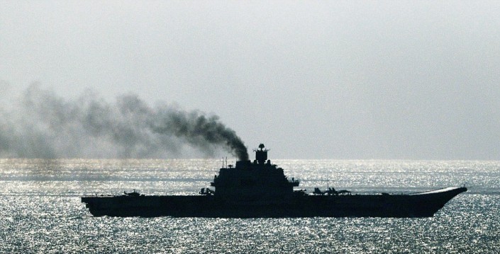 Помимо "Адмирала Кузнецова", в российскую флотилию входят атомный ракетный крейсер "Петр Великий", два больших противолодочных корабля класса "Удалой" и четыре других корабля.