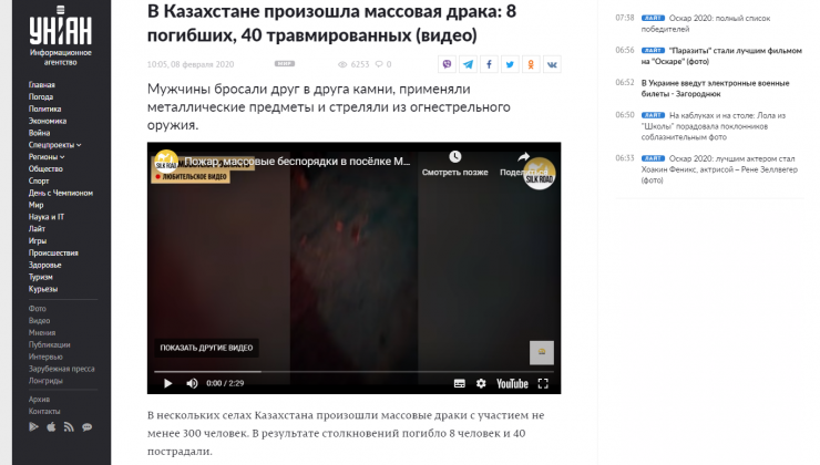 Unian.net украиналық ақпарат порталы Қазақстандағы қайғылы оқиға кезінде қаза тапқандар туралы ақпарат беріп, қақтығыс кезіндегі видеоны жариялаған.