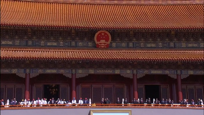 Помимо Нурсултана Назарбаева, за парадом вместе с Си Цзиньпином наблюдают Владимир Путин, Алмазбек Атамбаев, Александр Лукашенко, Ислам Каримов и главы других государств, которые прибыли в КНР. Глава Китая лично встретил каждого президента и сопроводил к месту наблюдения за зрелищным мероприятием.
