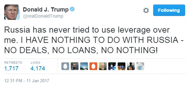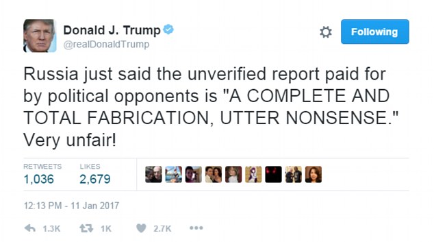 10 января американский портал Buzzfeed News опубликовал неподтвержденный 35-страничный доклад с "компроматом Кремля" на избранного президента Дональда Трампа. Это произошло после того, как телеканал CNN, ссылаясь на анонимные источники, заявил, что спецслужбы США располагают информацией о наличии у России такого компромата.