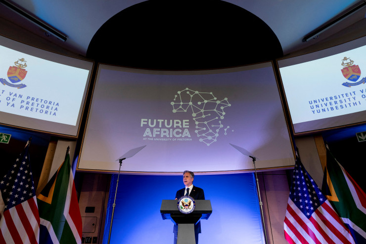 Госсекретарь США Энтони Блинкен представил новую американскую стратегию для стран Африки в Университете Претории в Йоханнесбурге, столице ЮАР, в рамках континентального тура по трем странам.