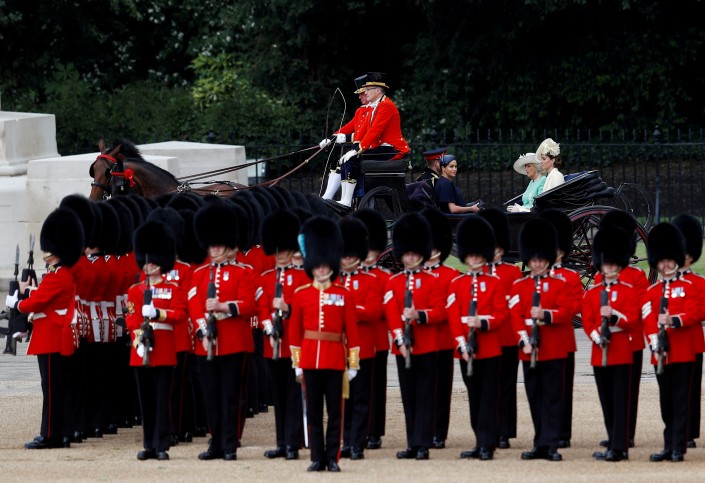 Парад в честь дня рождения правящего британского монарха проходит на протяжении более 260 лет. В этом году в нем принимают участие более 1400 солдат, почти 300 лошадей и 400 музыкантов.