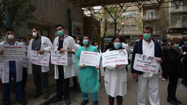 Бір апта бұрын Грекияның бірнеше қаласында бірқатар аурухананың медициналық қызметкерлері үнсіз шеру акциясына шықты. Дәрігерлердің назы - коронавирус кезінде қызметкерлердің жетіспеуі, жағдай жасалмауы.