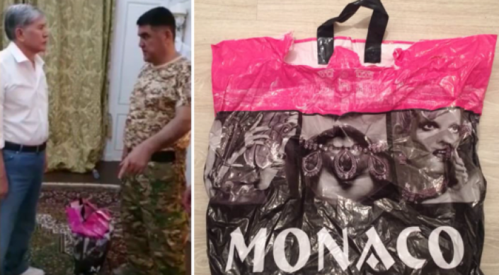 Қырғызстанның бұрынғы президенті билікке берілуге келісімін берген кезде Атамбаев пен Асановтың ортасында тұрған қызғылт пакет Желіде қызу талқыланып жатыр.