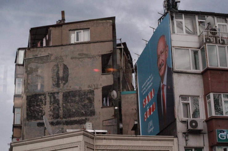 На фото предвыборная агитация кандидата от Республиканской народной партии Кемаля Кылычдароглу.