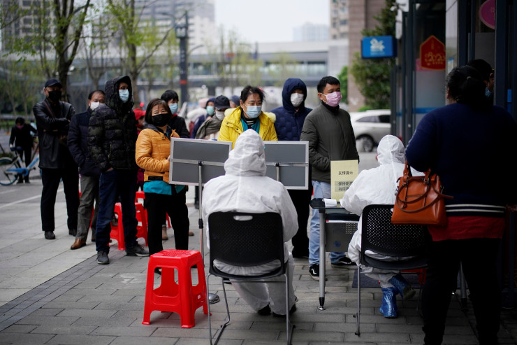 Жители Уханя выстроились в очередь возле отделения банка. © Reuters