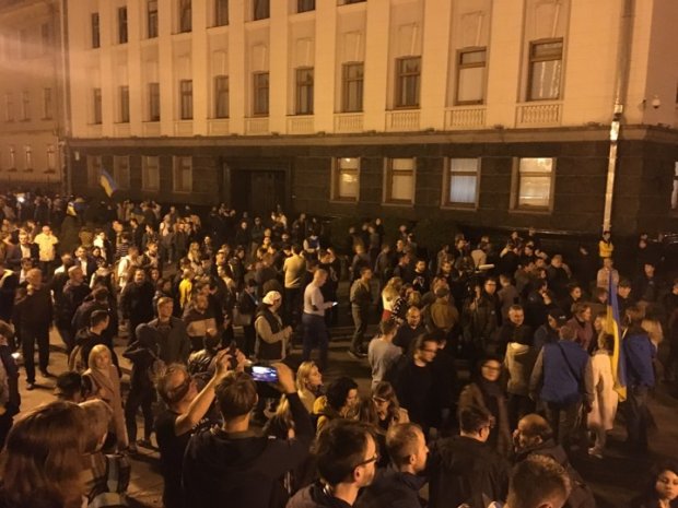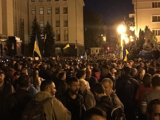 Самый масштабный протест начался вечером 2 октября в столице Украины. Люди держат в руках флаги Украины, плакаты против "формулы Штайнмайера" и выкрикивают "Нет капитуляции!". Митинг сначала проходил на Майдане Незалежности. После этого колонна из нескольких тысяч человек переместилась к стенам офиса президента.