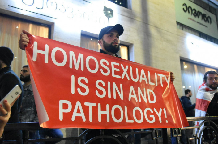 По мнению противников премьеры, лента является пропагандой гомосексуализма. Люди принесли с собой плакаты с надписями: "Не превращайте Грузию в Содом и Гоморру", "Узаконивание и пропаганда мужеложства - геноцид народа". Сообщается, что протестующие использовали файеры и петарды.