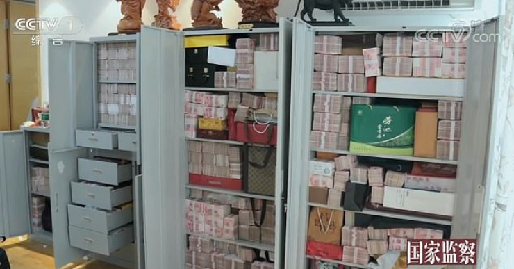 Шкафы, набитые наличными в квартире экс-банкира в Пекине. © CCTV