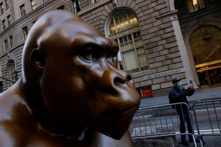 Двухметровую бронзовую статую гориллы Харамбе, убитой сотрудниками зоопарка в 2016 году, установили на улице Уолл-стрит в Нью-Йорке, передает Tengrinews.kz со ссылкой на РИА Новости.