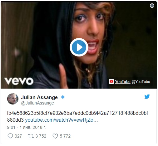 Основатель WikiLeaks Джулиан Ассанж опубликовал утром 1 января загадочный твит, который не дает покоя сотням пользователей, передает РИА Новости.