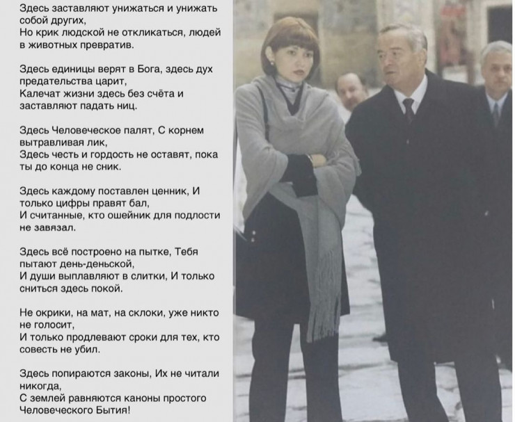 Старшая дочь покойного президента Узбекистана Гульнара Каримова передала на волю стихи собственного сочинения. Об этом в своем Instagram написала ее дочь Иман Каримова, сообщает Tengrinews.kz.