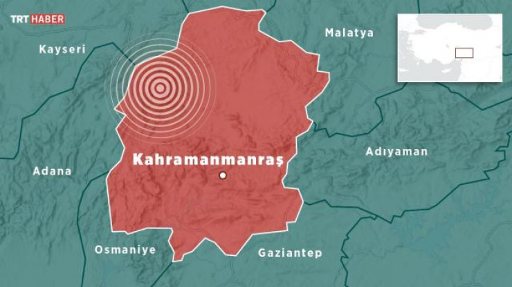 В турецкой провинции Кахраманмараш произошло землетрясение магнитудой 4,7. Об этом сообщает Управление по предотвращению и ликвидации последствий чрезвычайных ситуаций при правительстве Турции (AFAD), передает Tengrinews.kz со ссылкой на "Анадолу".