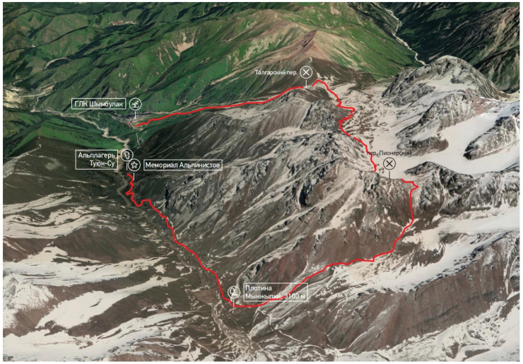 Описание: альпинистский лагерь "Туюк-Су" - Мынжилки - перевал Пионер - Шымбулак